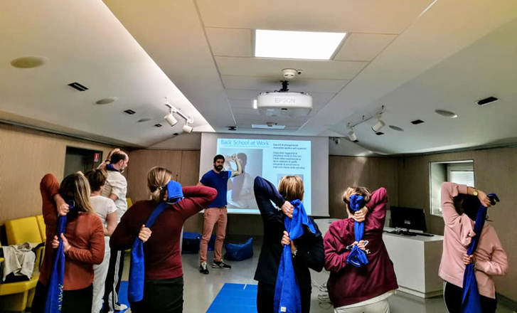 La formazione teorico-pratica viene realizzata presso l’azienda cliente in piccoli gruppi per garantire una adeguata supervisione da parte dei nostri operatori. I corsi hanno come scopo la formazione dei lavoratori utilizzando il protocollo Back School at Work che mira allo sviluppo della consapevolezza posturale e alla prevenzione dello sviluppo di disturbi muscoloscheletrici legati alle attività lavorative.